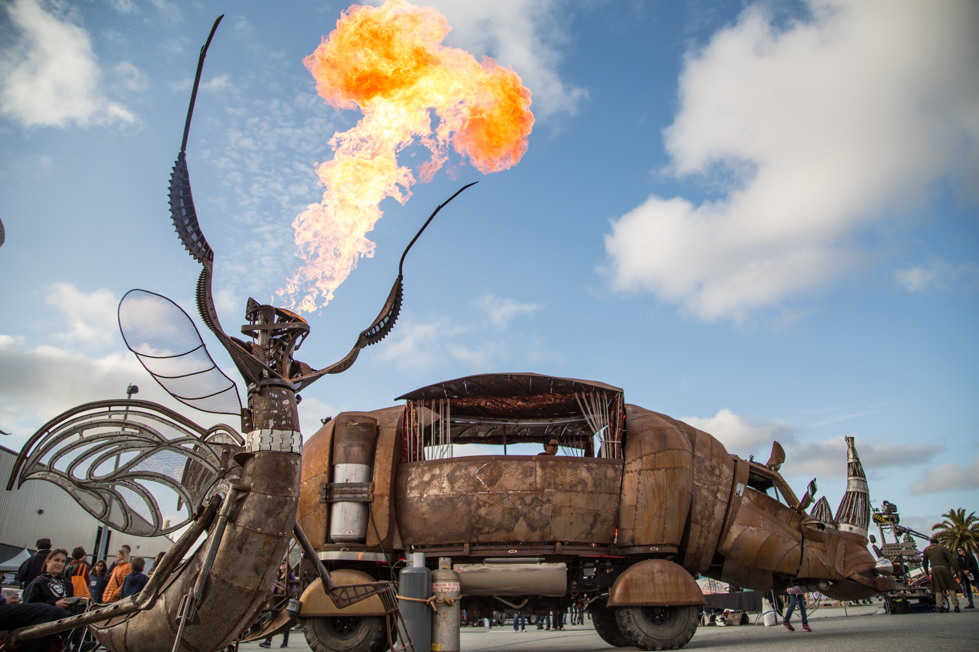 We already wrote a profile of Christian Ristow, featuring his Hand of Man kinetic artwork, but we had to include it again as it was on so many people’s lists of Faire favorites. Not only did the piece look amazing, but you cannot imagine how satisfying it was to crush a giant object within a giant robotic hand and forearm controlled by your puny meatbot arm and hand. This is the kind of stress-reliever that everyone needs in their backyard.