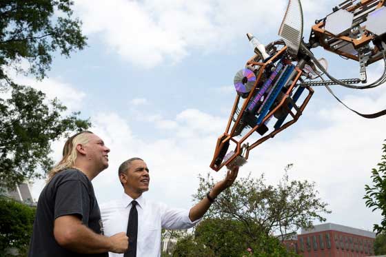 In February of 2014, the White House announced that it would be hosting a Maker Faire on its grounds. That event took place on June 18th, 2014. Over 100 makers from 25 states got to show President Obama and other lawmakers, the media, and the world their passion for making and innovating. The President also declared June 18th a National Day of Making and challenged individuals, companies, and organizations to join the Maker Movement in helping to foster innovation and STEAM education in the US. Make:founder and publisher, Dale Dougherty, Maker Media V. P. Sherry Huss, Maker Faire Producer, Louise Glasgow, and many others from the Maker Media team where hosted at the White House. I can’t think of a better way to end this piece, tracking the dramatic arc of Maker Faire and the Maker Movement, than finding our team proudly taking group photos and selfies at the White House while attending a White House-sponsored Faire. This month, the White House officially announced the National Maker Faire on June 12 & 13, 2015 and a Week of Making (June 12-18). For more info, you can sign up here.