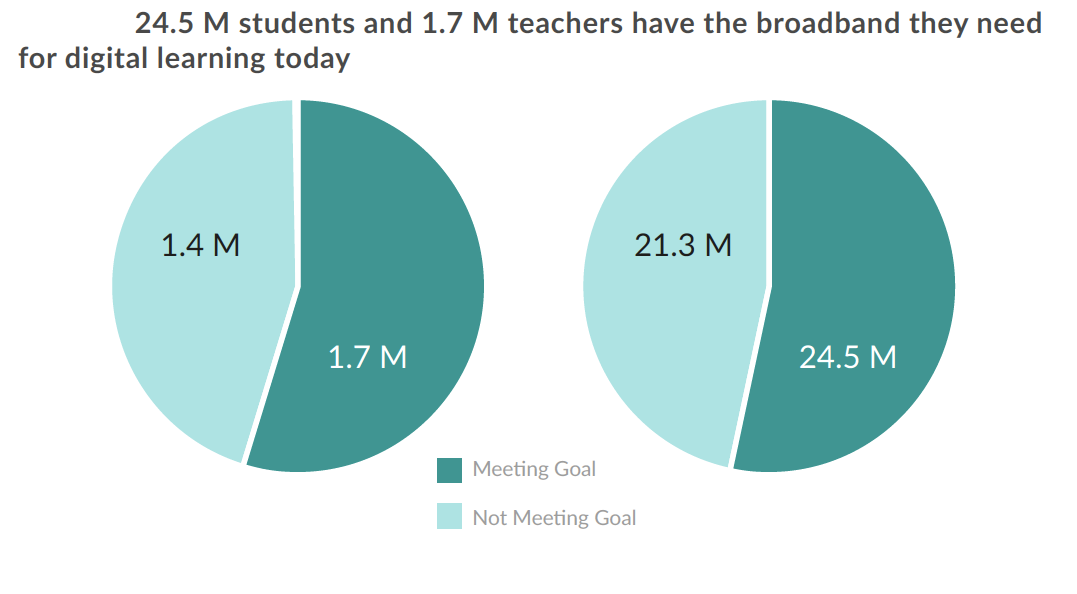 Despite the political support and current progress made, over 21 million students—roughly the size of the population of metropolitan New York—still lack adequate Internet access. Even more worrisome is that the FCC has set a goal for all districts to provide 1 Mbps per student—ten times the current target of 100 kbps—by 2018.