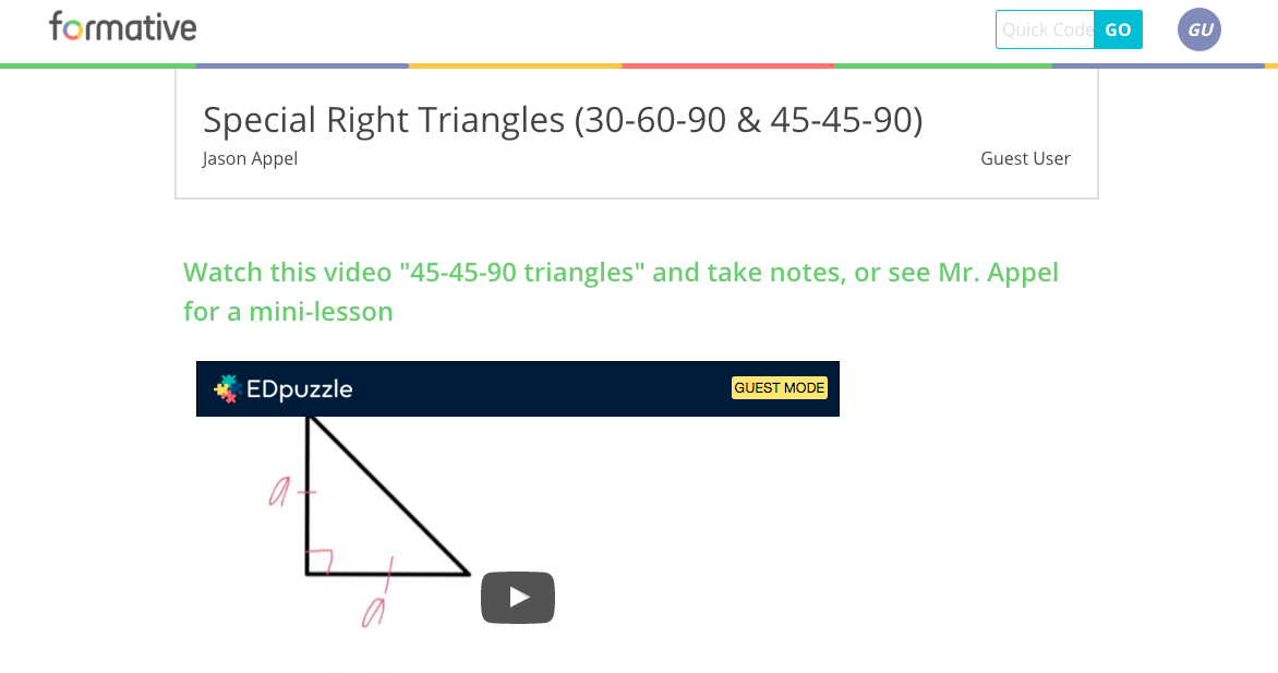 This year, Barrington High School (where I teach math and support my staff as the Technology Integration Fellow) went 1:1 with Chromebooks, which were issued to every student before the start of the school year. This enabled me to go all-in with the integration of technology into my classroom. I use a playlist model, where students progress through a series of steps at their own pace. These steps include screencasts, skills practice, and deeper problem solving. (Here is a sample playlist). However I had a big need—and that was effectively using formative data.