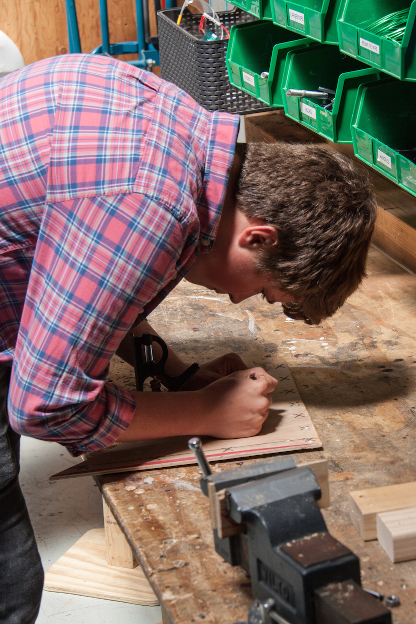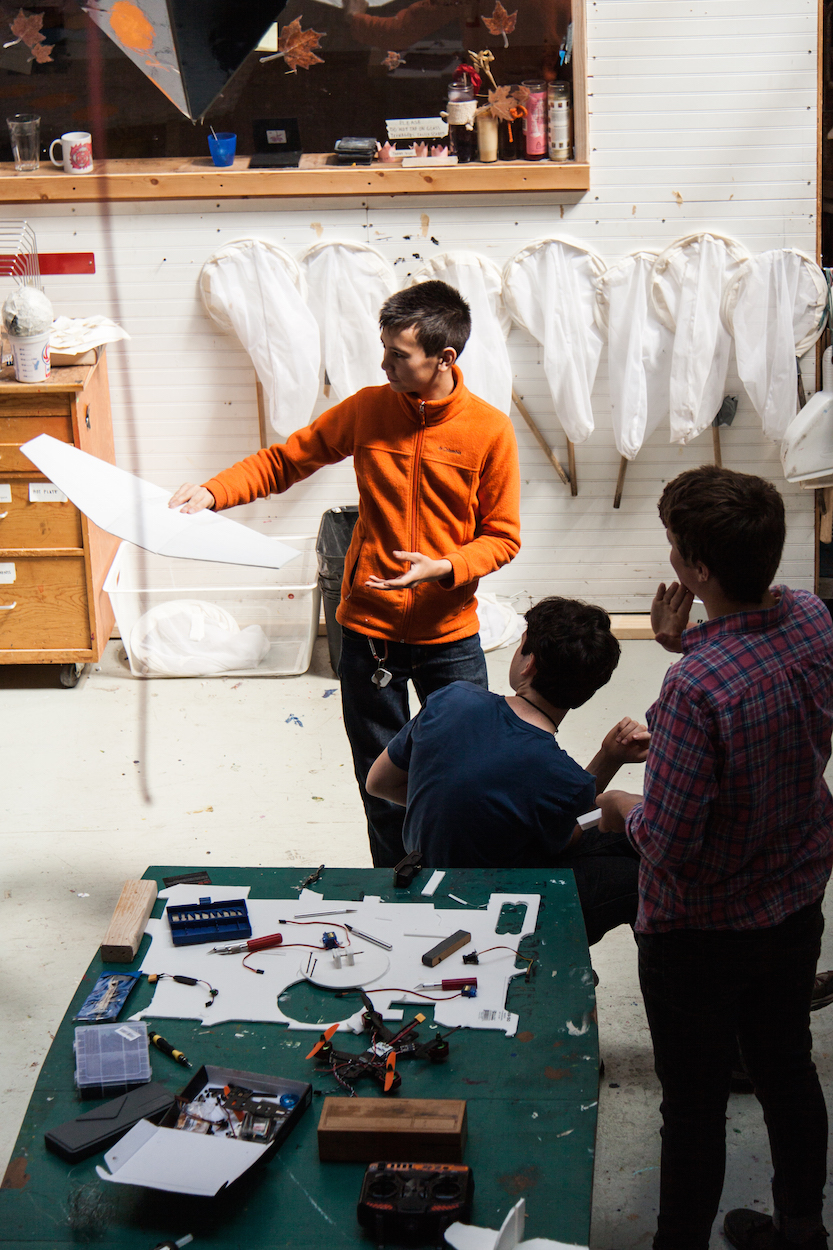 Helping one another even informs students' creations. During our visit, a student was prototyping one-legged, unstable stools as toys for fidgeting younger students. She wanted to know if the focus required to keep the stool in place would be a productive way for them to direct their energy. She was close to finishing her first set of stools.