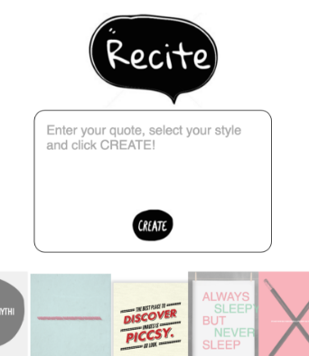 One tool that could be used for this is Recite, a quick and easy tool that lets you and your students create visual products that can be used in both current and historical social media posts. No account creation needed. It’s easy to use, and easy to share. Simply type in a message, select a style, and click Create, as shown below. Take a screenshot or share via traditional social media options, and you’re good to go. (See below.)