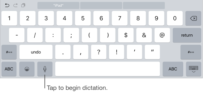 - Using Their Voice: Apple’s iPad User Guide provides basic directions to initiate dictation (shown above), as well as the commands to format and organize content. While using dictation, students keep a loud enough volume, enunciate, and be aware that body posture and actions can influence the word flow and voice level. Students should try to keep a steady flow of words without speaking too quickly; it is fine to pause if you need to think, there is no rush.