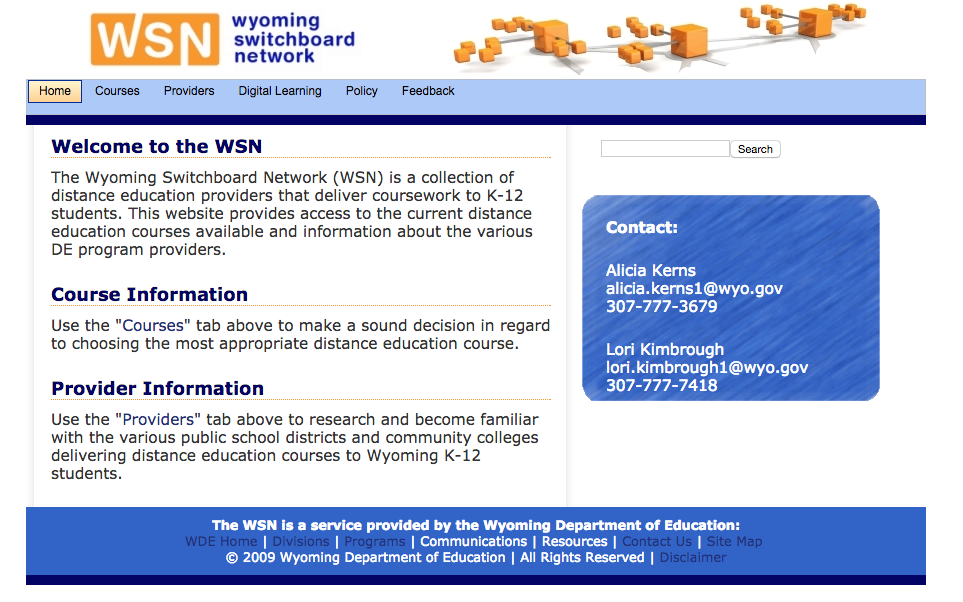 But there was an issue: the differences between school bell schedules across the state eventually led to the demise of interactive video courses. To respond to this, the Wyoming Switchboard Network portal put together a platform housing a listing of all available online courses and programs was born during this era, and over the years that followed, students, parents, and schools were given access to a wide variety of supplemental and full-time programs, courses and teachers—right at their fingertips.