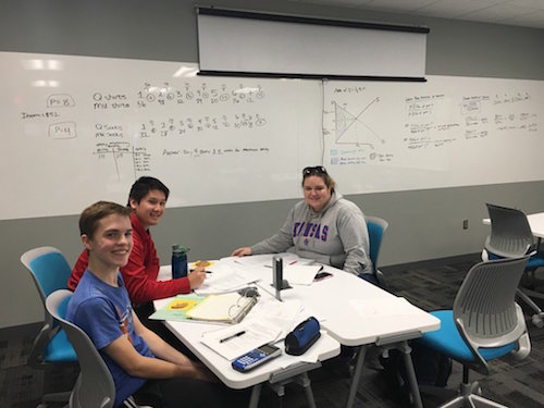 Learning Studios are designed to provide a flexible learning and teaching environment beyond the traditional classroom, Dean Miller explains. Tables and chairs can be easily assembled for a group activity, or separated for a lecture-style class. Electronic whiteboards allow for on-screen annotation and remote Internet access. Wireless clickers let students to participate in live polling to increase engagement during lectures.