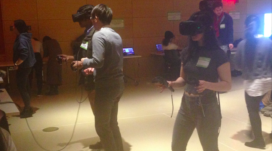 “The equipment matters. If there is a latency between the computer and the VR set that can cause a lot of problems,” says Chia Liao, a student from Parsons who demoed her VR project, Cerebral Evidence. Her project, which her team worked hard to set up, explored conscious and subconscious reactions to being surveilled on a daily basis.