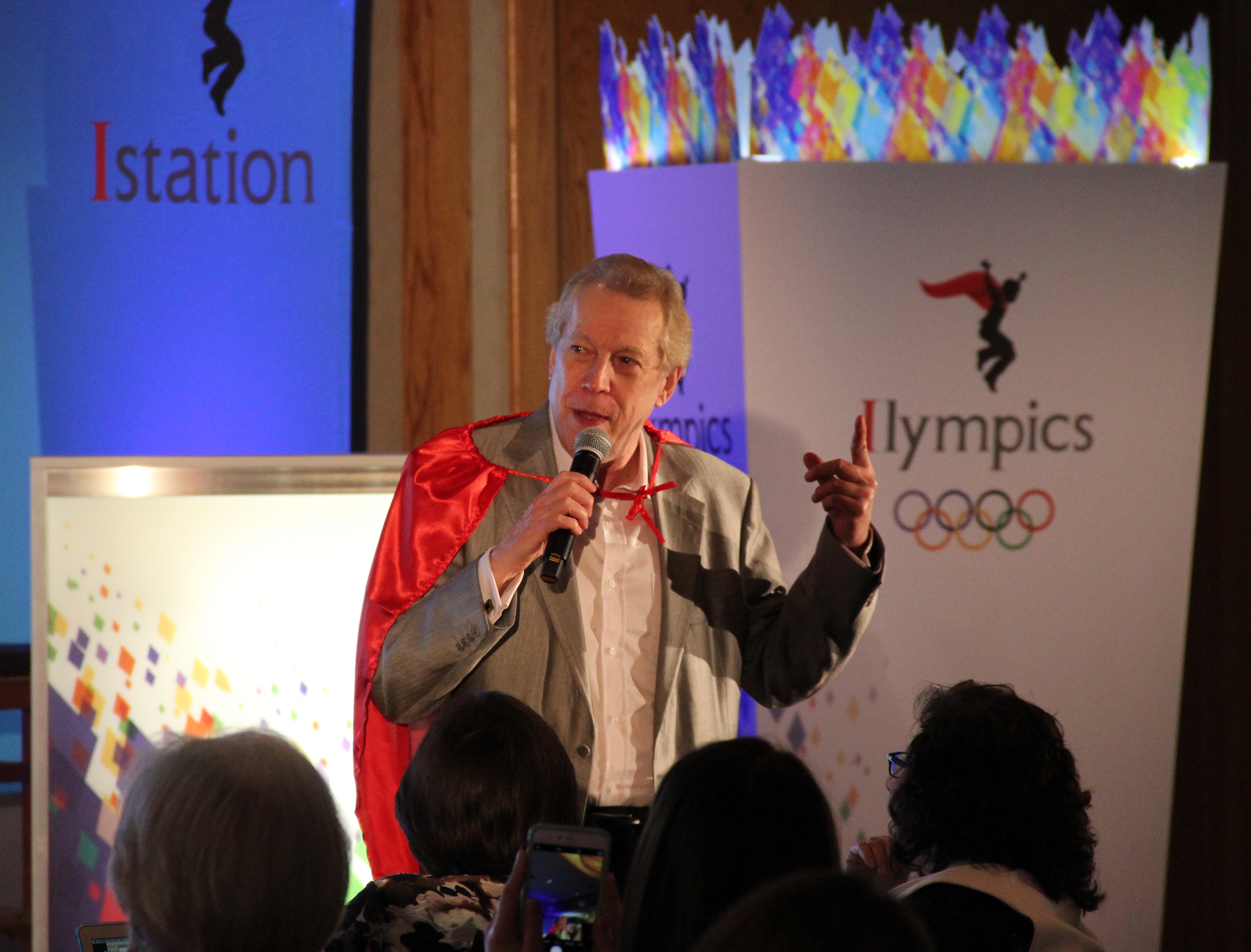 The logo of a student leaping through the air wearing a red cape represents struggling, at-risk students who feel afraid and overwhelmed but, with Istation’s help, banish those negative feelings and focus on learning.