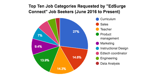 There’s a caveat, however. Resor says that while curriculum roles do seem to get a lot of attention on the jobs board, she and her team have noted that other job areas are growing to be more and more popular, according to data from EdSurge’s job matching service, Connect.