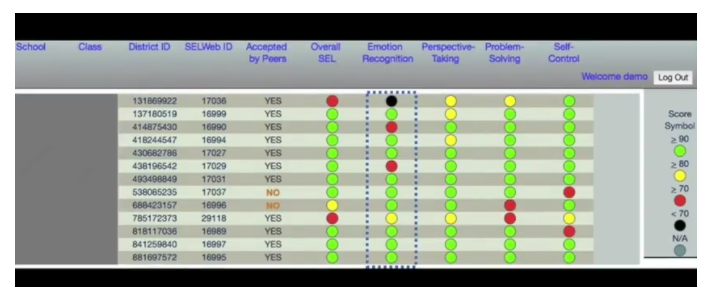 Unlike traditional surveys, SELweb is made up of online tasks that test skills directly. One task asks students to identify facial expressions in order to assess social awareness. Another provides a simple game with an intentional glitch built in. Self-control is measured by how long students are willing to persist amidst the mild frustration.