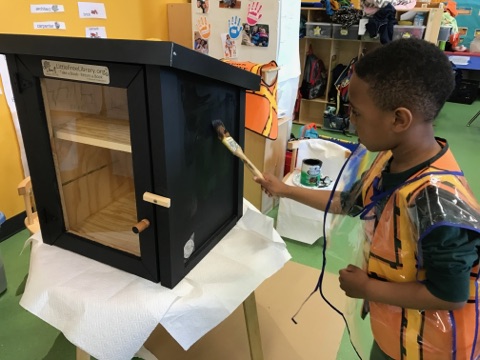 Every year, our pre-K classes complete an expedition around building. Students learn the importance of making a plan and following through. Last spring, in connection with one of Washington DC’s Advisory Neighborhood Commissions, our Pre-K teachers identified an authentic problem in our community that the students could help solve by learning about building—some people don’t live close to a library. To solve the problem, students worked together to build something to help people get books in their neighborhood.