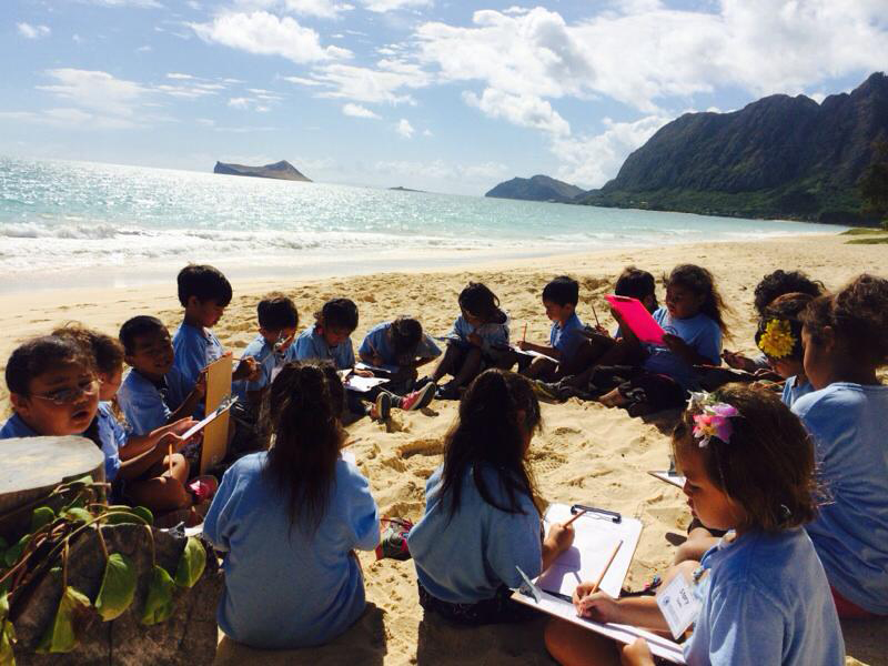 In 2017, our school population, of a little over 100 students, mirrors the community which we serve: our K-5 student population is over 70% Native Hawaiian and more than 65% qualify for free-and-reduced lunch. To ensure that their learning is meaningfully tied to the community, our students engaging in project-based learning about the land and host culture in which they live and belong. Our students do projects to answer the overarching essential question: “How do I live mālama honua?”