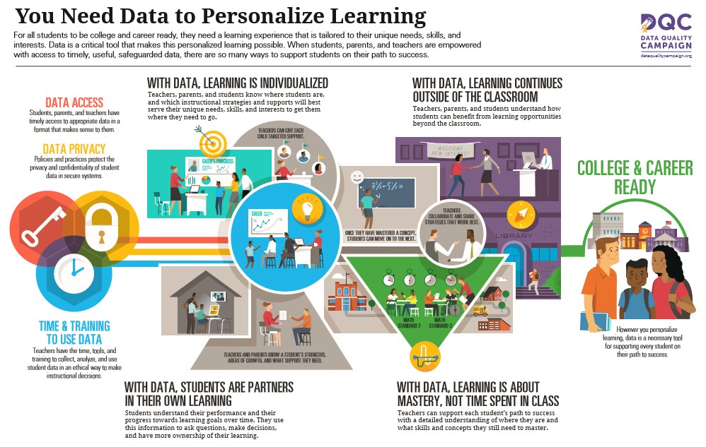 Or as the Hechinger Report noted: “Educators, students, policy makers and the public must be able to understand and use the data. Many schools struggle with this, according to a report published late last year from the Data Quality Campaign, a Washington, D.C.-based nonprofit that advocates for more effective use of educational data. The organization’s review of all 50 states found complicated data files being published without any context or attempt at making sense of it all.”