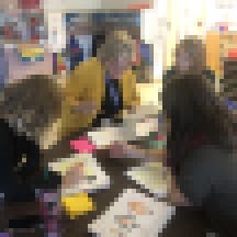 Helmick and other kindergarten teachers routinely huddle with Pistillo to reflect on the lesson and to plan for the next round of writer’s workshops. For example, Pistillo is already thinking about how she can work with the preschool teachers to help next year’s kindergarteners be more prepared.