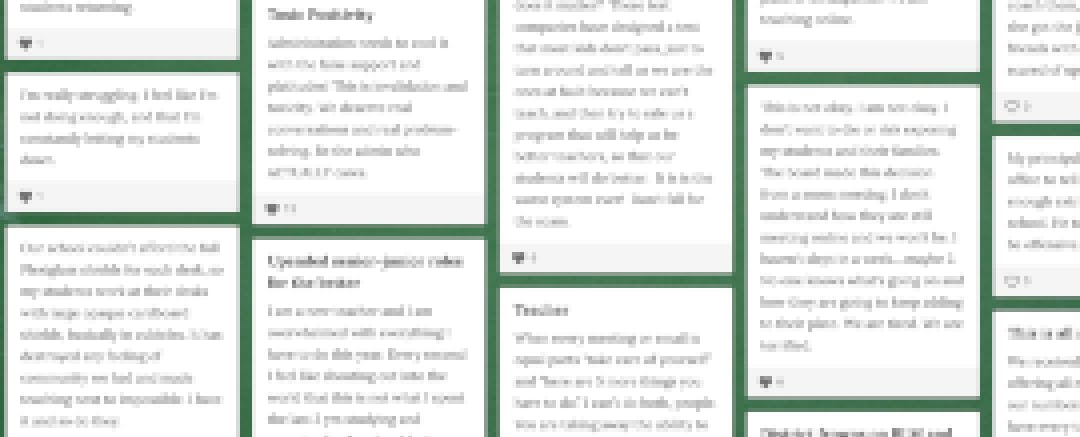 By Friday evening, the same day they launched the project, martin ended Twitter submissions and set up a Padlet board for anonymous teachers to share their thoughts. (You can also share yours with EdSurge using the Google form at the bottom of this page, which will help guide our coverage on the return to school.)