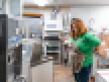 Rothrock, 43, ties on her apron at Polly’s, a roadside restaurant. Photo by Jon Cherry for EdSurge.