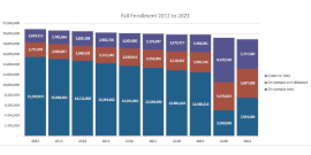 These days senior college leaders should be eager to find out, as enrollment overall is falling even while interest in online courses is on the rise. A recent analysis of federal government data by Jeff Seaman of Bay View Analytics shows that enrollment in on-campus courses fell nearly 11 percent in the past decade and almost 30 percent from 2020 to 2021. In contrast, enrollment in online courses shot up from nearly 34 percent over the 10-year period and leaped 110 percent in the first years of the pandemic.