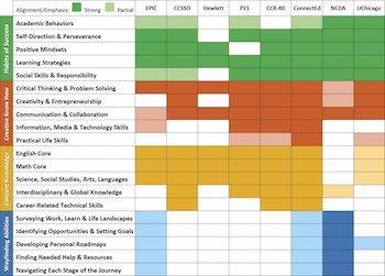 There are a number of education organizations building twenty-first century learning resources to help schools as they consider making some of these changes. Frameworks such as Deeper Learning Competencies from the Hewlett Foundation, Framework for 21st Century Learning from P21 and Teaching Adolescents to Become Learners from University of Chicago’s Consortium on School Research, highlight and organize competencies that will prepare learners for today’s college and career landscape.