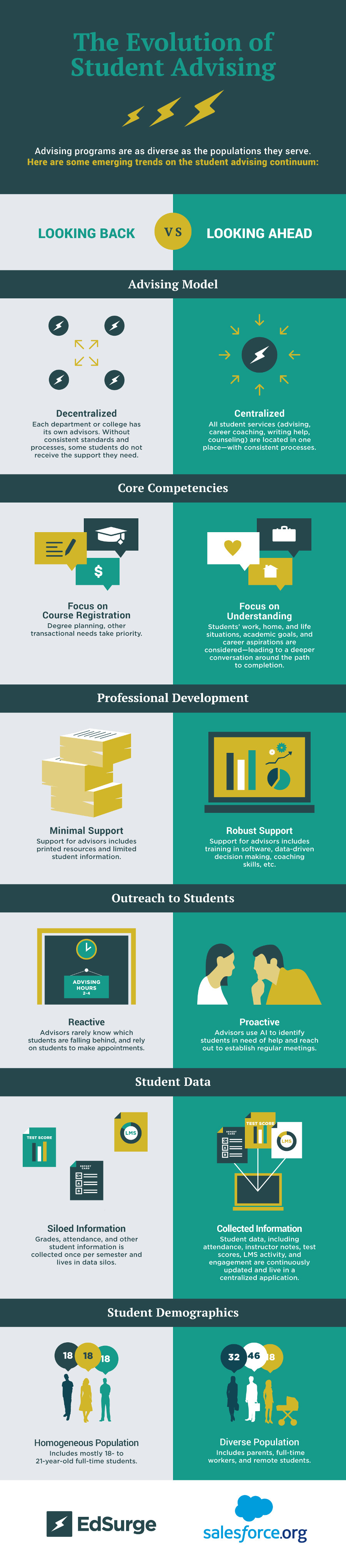 The evolution of student advising highlights the impact of new technologies and changing processes on student success. View the full infographic here.